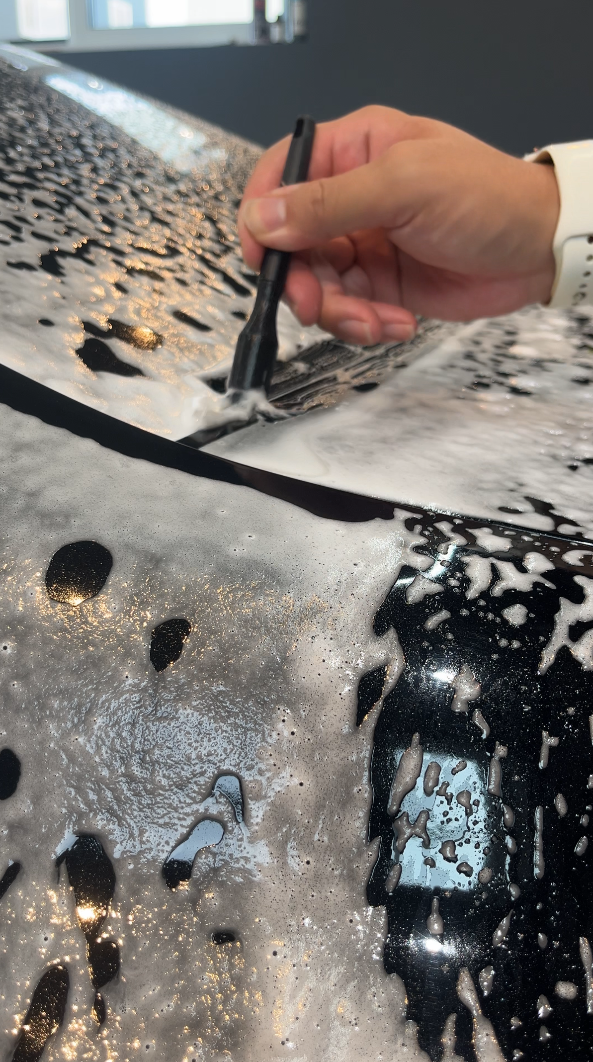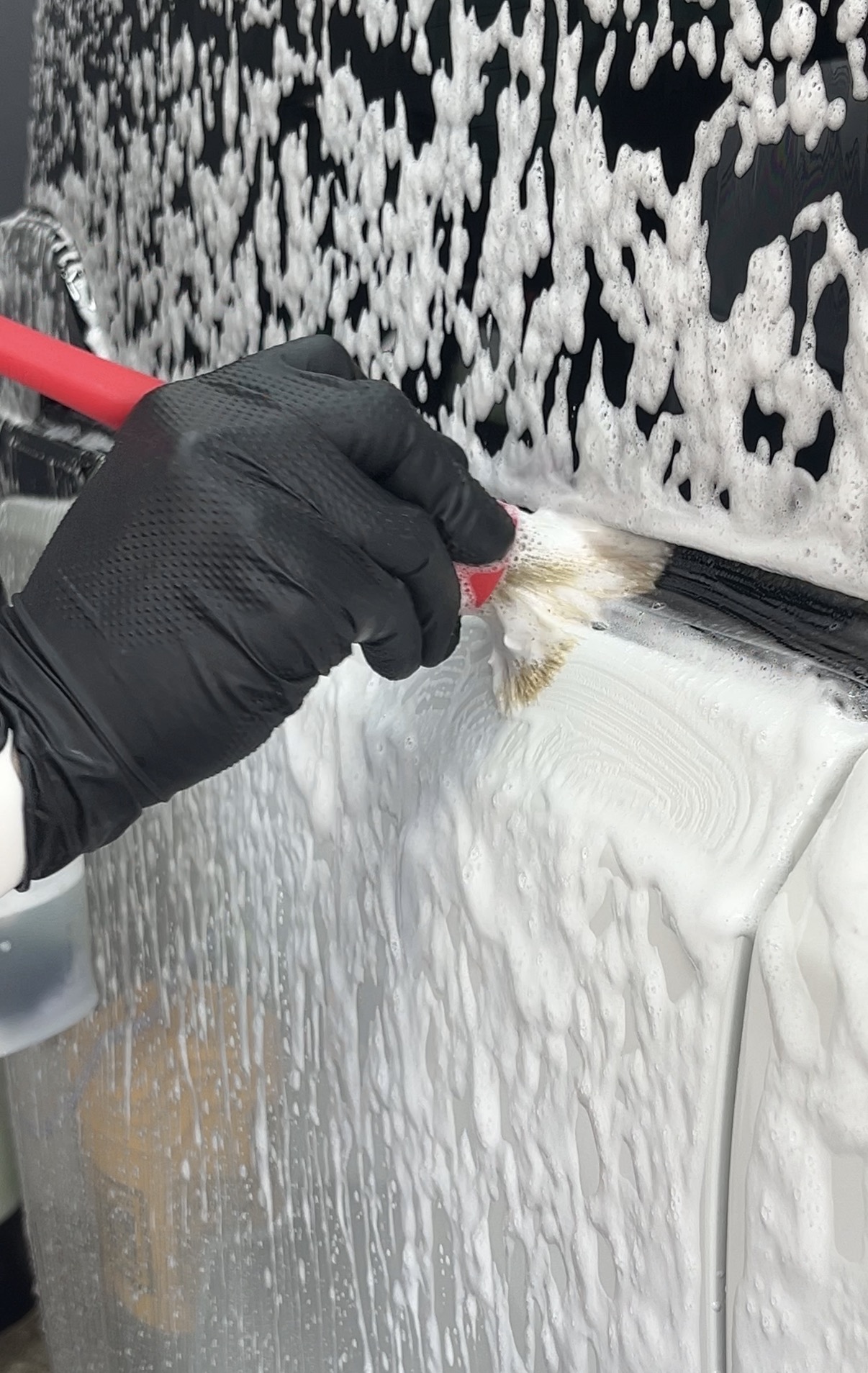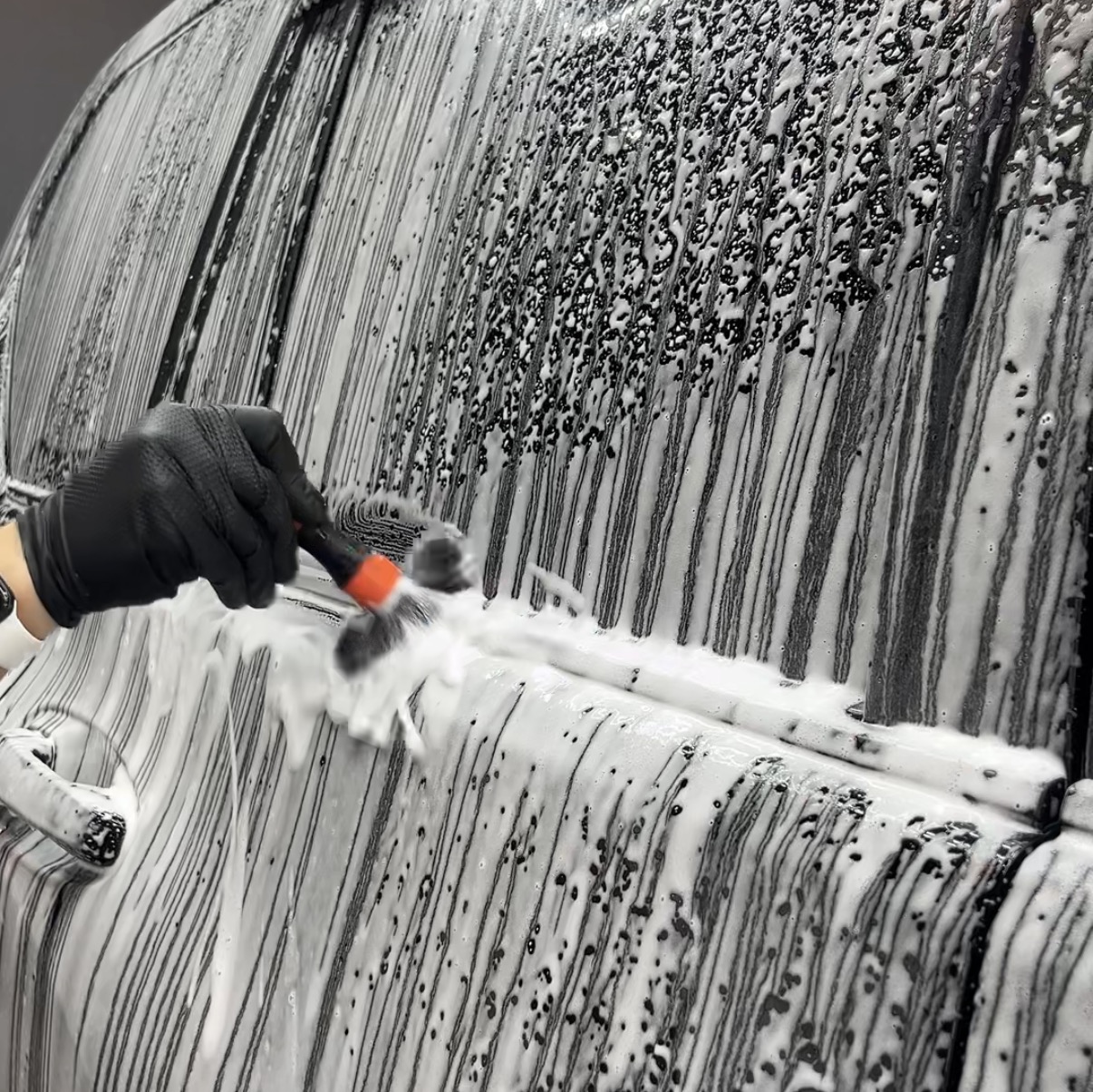 プレウォッシュで汚れを浮かせ、接触を最小限に抑える工程設計。洗うこと自体が、塗装を守る行為であると考えています。